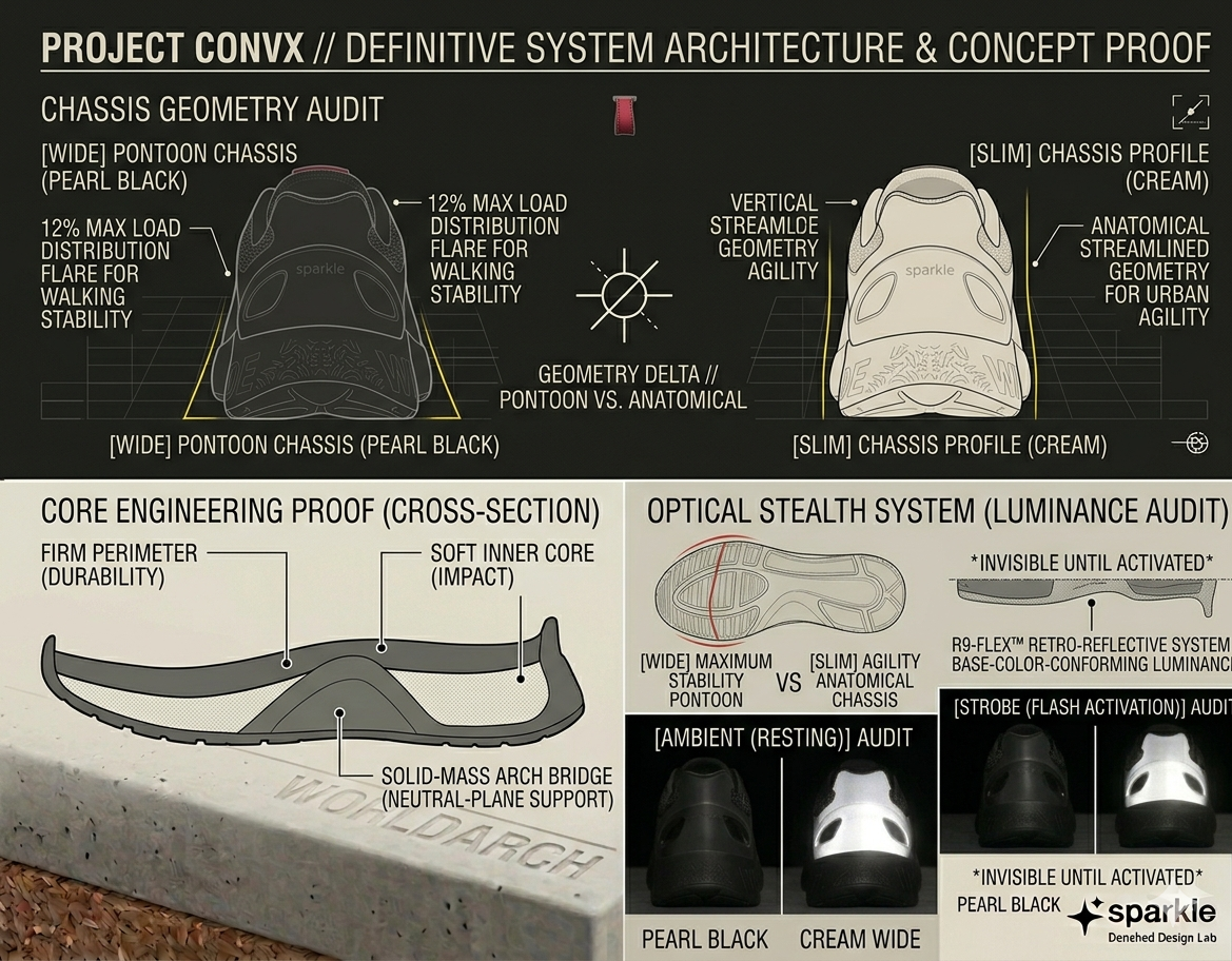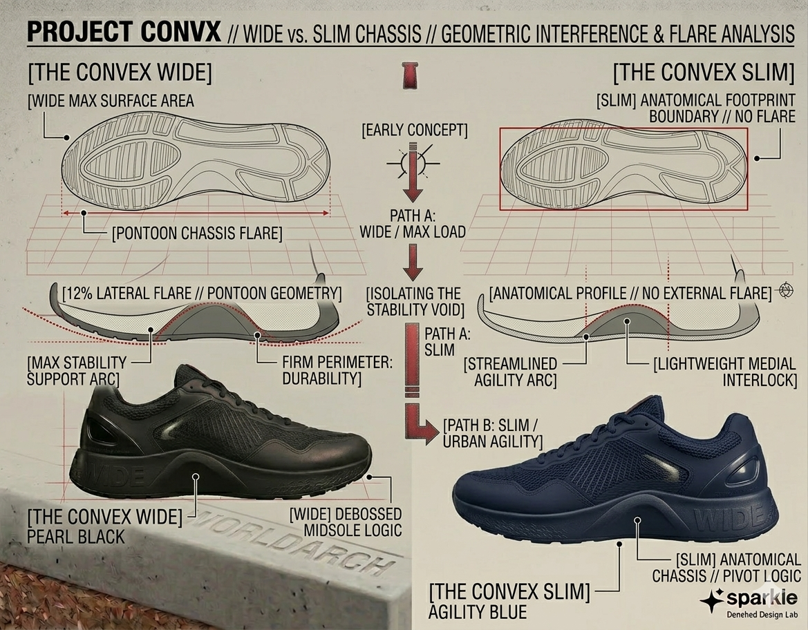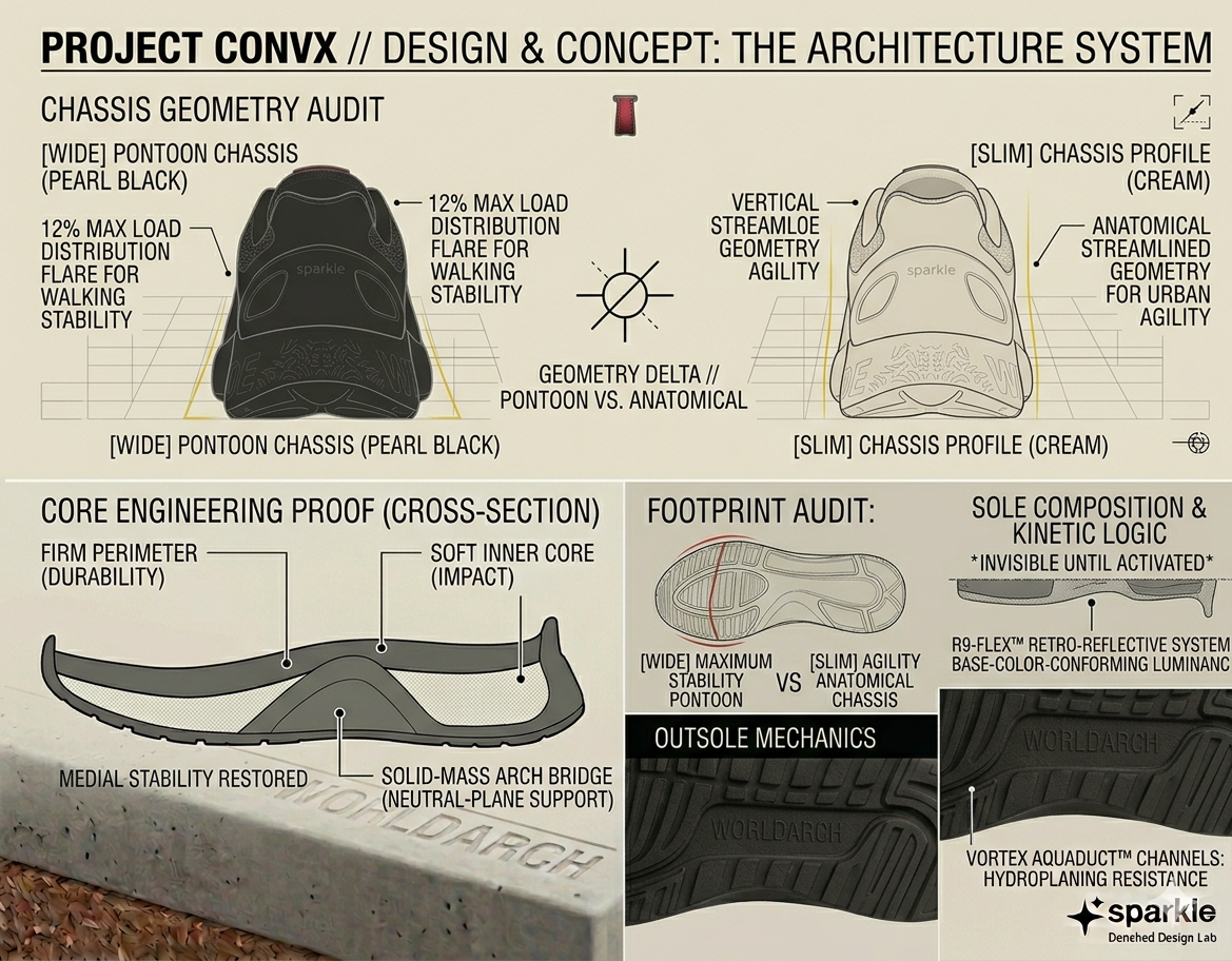 [ WIDE CHASSIS ] 12% LATERAL FLARE // MAXIMUM STABILITY PONTOON [ SLIM CHASSIS ] ANATOMICAL STREAMLINE // URBAN AGILITY